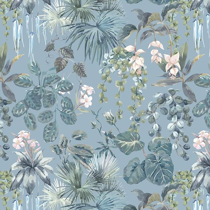 Blue Peel and Stick Wallpaper Floral Contact Paper 17.3×78.7in Tropical Jungle Palm Leaf Stick on Botanical Removable Self Adhesive Wallpaper for Bedroom